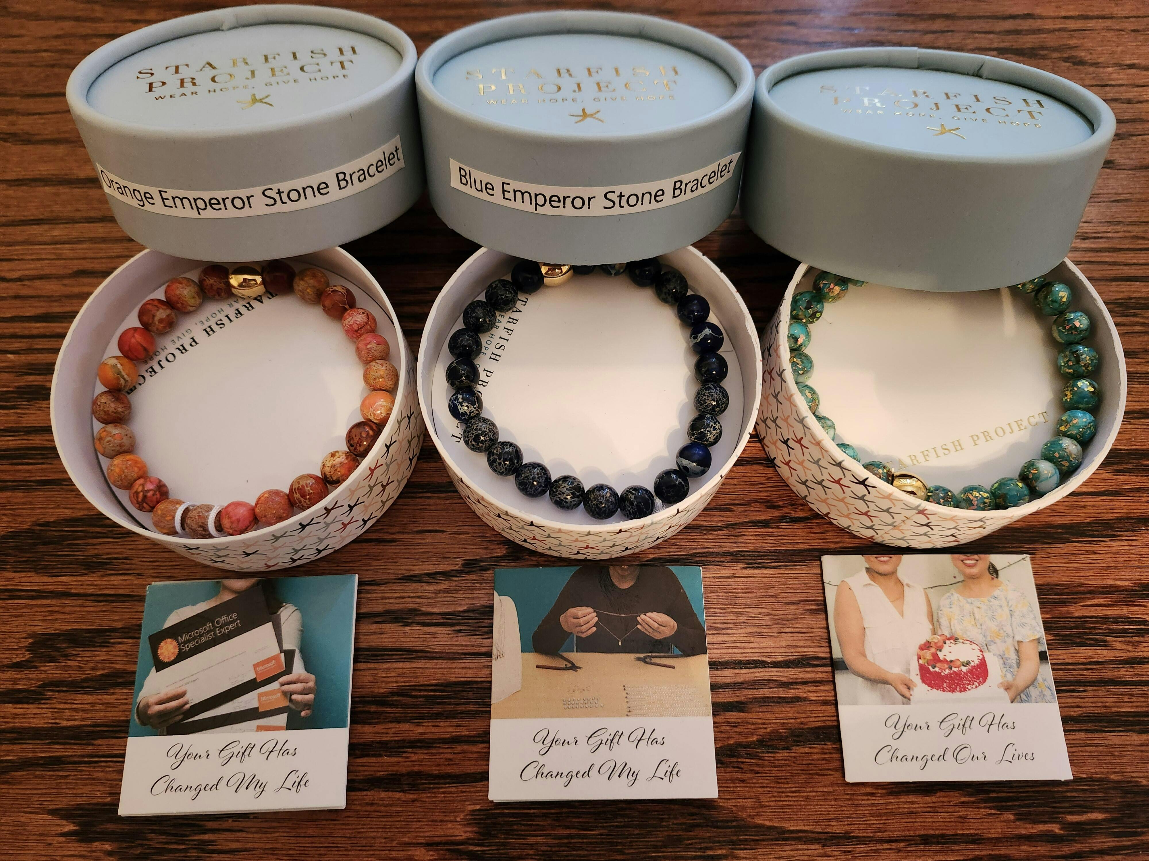 Everything about the Starfish Project jewelry offerings has consistently been exceptional: the beautiful stones that are selected, the workmanship of the maker and maker's signature and enclosed information, and the dainty well-constructed boxes w appealing colors and design. I have given quite a number of these jewelry items as gifts and they have been very well received!